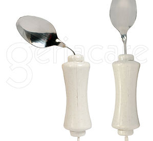 Este utensilio de acero inoxidable se ha construido para personas con artritis, debilidad en el agarre u otras limitaciones en la mano. La forma de su contorno hace más fácil sostenerlo y usarlo.